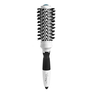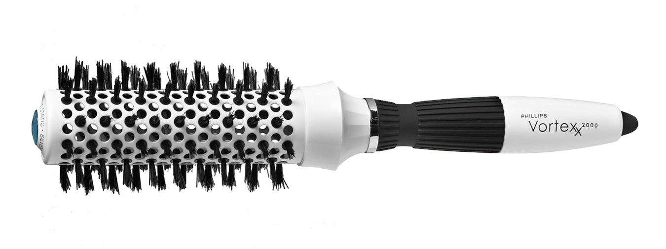 Featuring a ceramic-coated barrel for even heat distribution and faster drying time, this brush is designed to deliver smooth, frizz-free results with every blowout. The pure bristle blend is enhanced with an ion coating to reduce static and boost shine, while built-in silver additives provide added protection against germs and viruses. Our patented Plug-Tuft technology implants each bristle directly into the metal core for superior durability, enhanced heat transfer, and longer-lasting performance. Whether you're shaping soft curls or creating sleek volume, the Vortexx is your go-to for professional-level results.