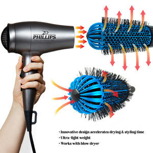 Revolutionize your hairstyling routine with this 2.25" nylon bristle aluminum barrel round brush.