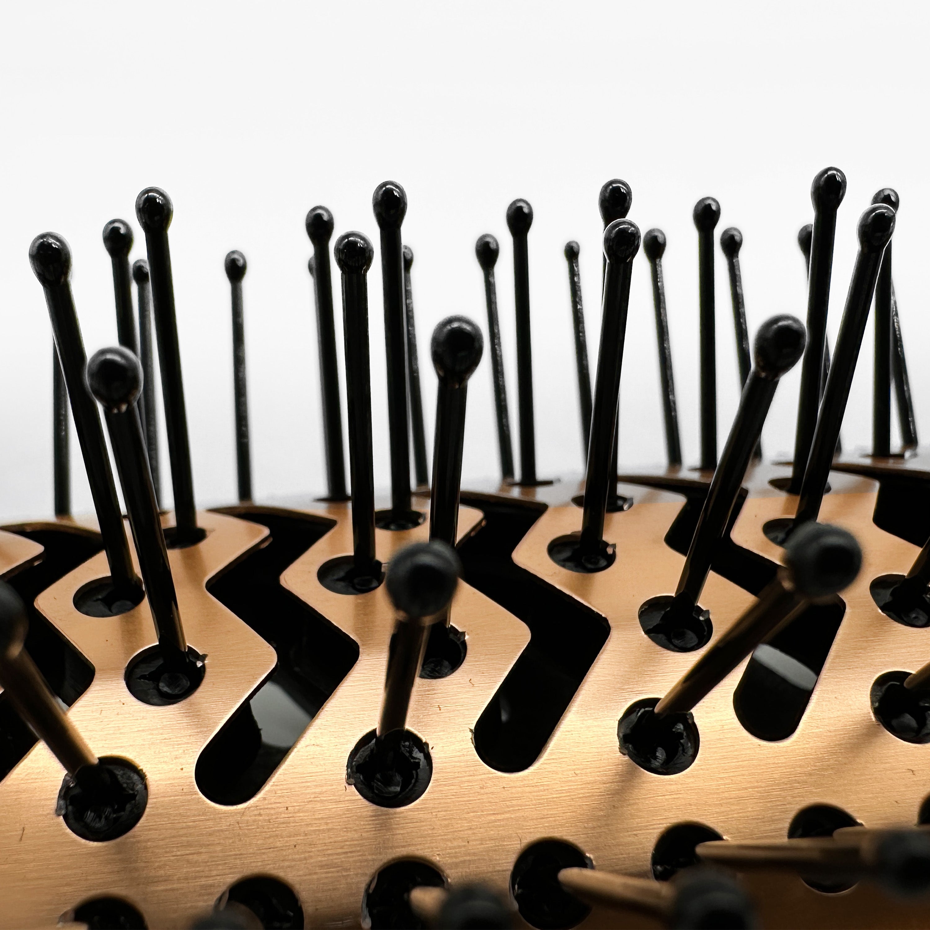 Our Hot Styler brush is a game-changer in the world of hairstyling, featuring an aluminum base, anti-static poly-tipped bristle ensuring optimal performance and stunning results.