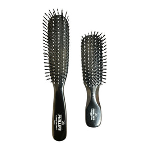 The Light Touch 8 and Light Touch 8 Purse are black rectangular brushes with soft and flexible ball-tipped nylon bristle. Tufting 2 piece bristle design with dual-length rounded tip for a gentle soft touch; detangle releasing natural oil while stimulating scalp for shiny healthy hair. Bristles are closely spaced so that even the shortest of hairs are not missed.