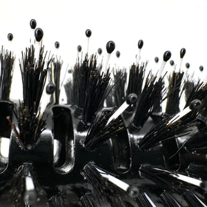 The monster vent round brushes are a cornerstone in our brush line. The vented design promotes efficient airflow reducing drying time and enhancing styling control. The combination of mixed boar and ionic nylon bristle reinforces the bristle's stiffness and provides strong penetration for thick and coarse hair. Available in various sizes.