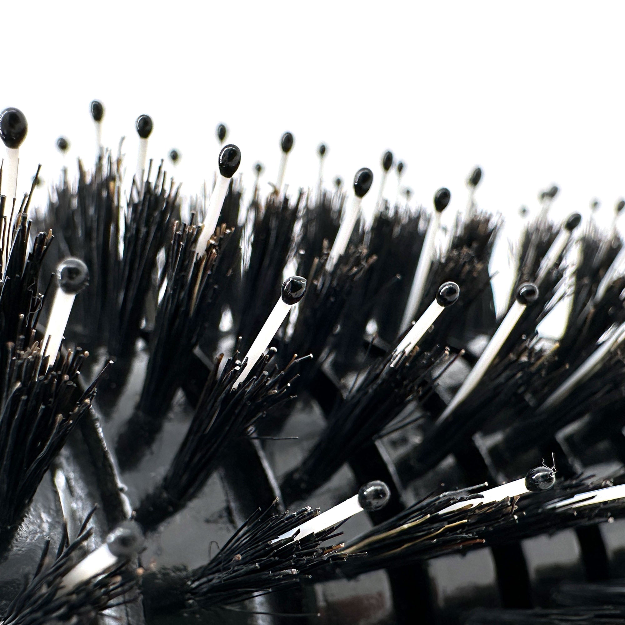 The monster vent round brushes are a cornerstone in our brush line. The vented design promotes efficient airflow reducing drying time and enhancing styling control. The combination of mixed boar and ionic nylon bristle reinforces the bristle's stiffness and provides strong penetration for thick and coarse hair. Available in various sizes.