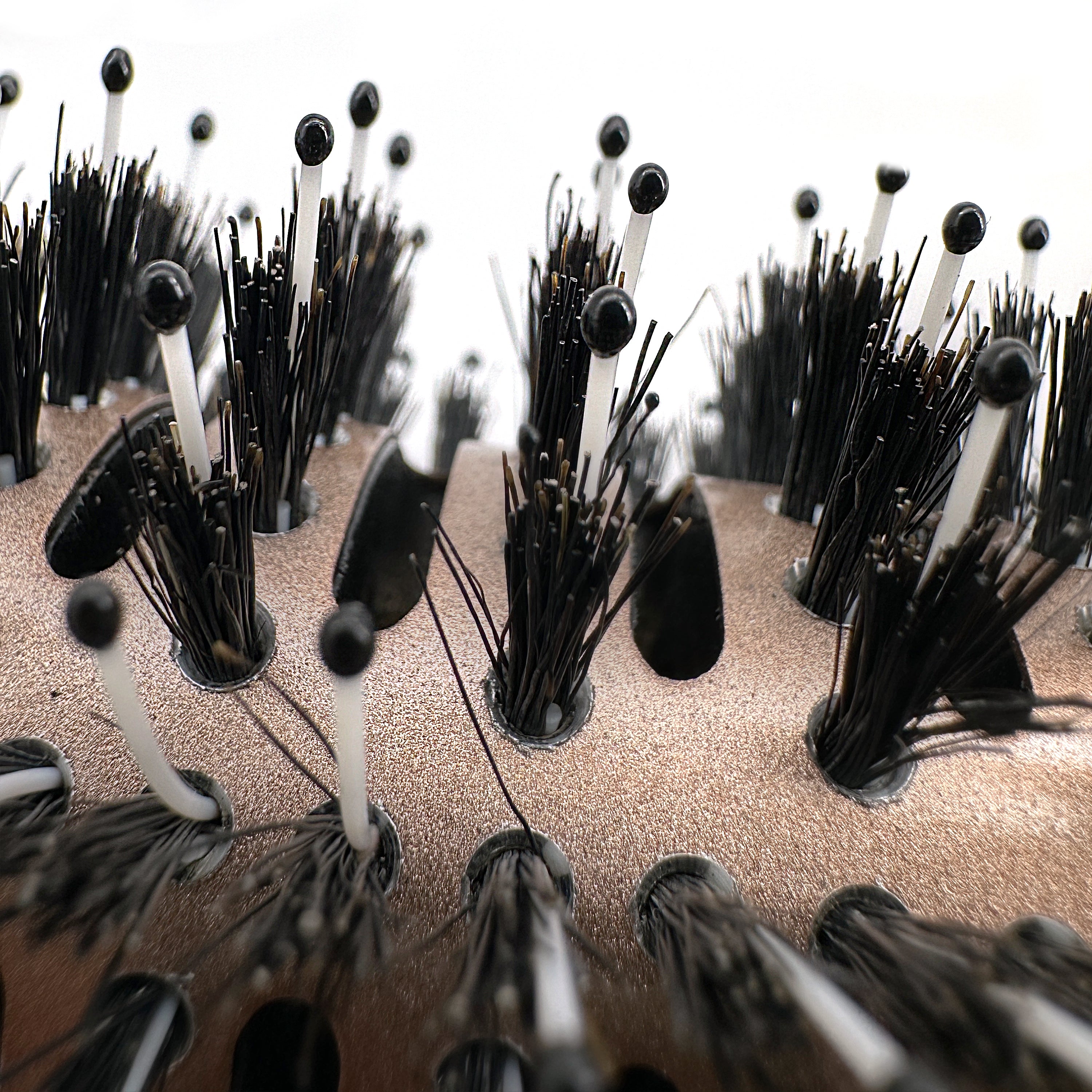 Our Tourmaline Monster Vent Round Brushes are a fusion of innovation and style. The incorporation of tourmaline enhances the brushes' performance by emitting negative ions, promoting smoother and shinier hair. The vented design ensures efficient airflow, reducing drying time and allowing for precise styling control. These brushes feature a carefully crafted wood handle with a raised rubber grip, providing both elegance and ergonomic comfort during styling sessions. Available in various sizes.